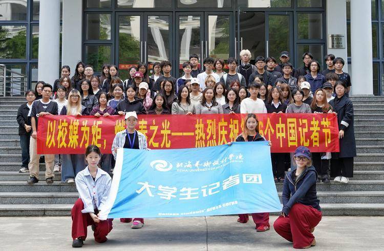 北海艺术设计学院最新一届学生宣传队伍——大学生记者团庆祝记者节合影。北海艺术设计学院供图